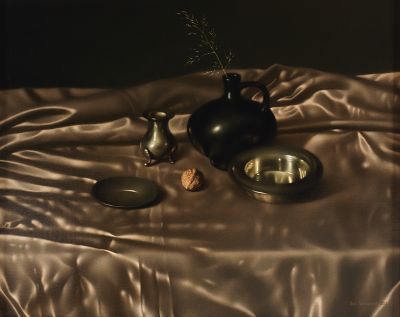 Vitali Grigoryev ( 1957 - ) is a painter. Vitali Grigoryev s works have been put up for auction numerous times, with realized prices surpassing estimated prices, varying from 833 USD for Water in the Glass in 2011 to 1150 USD for Still Life with a Nut in 2012 , based on the size and medium of the artwork.